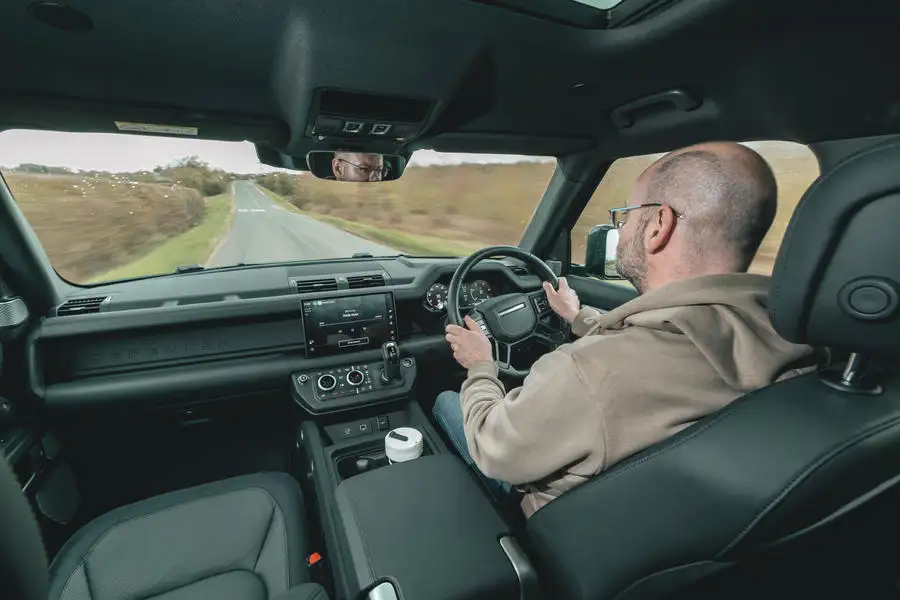 Set up for success Driving position commanding و forward visibility excellent، helping به make Defender exceptionally relaxing drive.