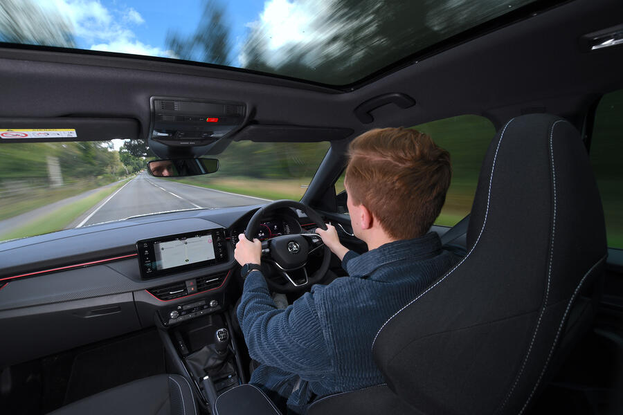 car ما latest Monte Carlo Kamiq است. Sounds sporty, right? Well, think less Toyota GR Yaris و more Yaris GR Sport: this style over substance. پس while nothing changes underneath, inside squidgy, bucket-like sports seats, panoramic glass roof, dual-zone climate controls و 10.25in digital driver's display still gets.